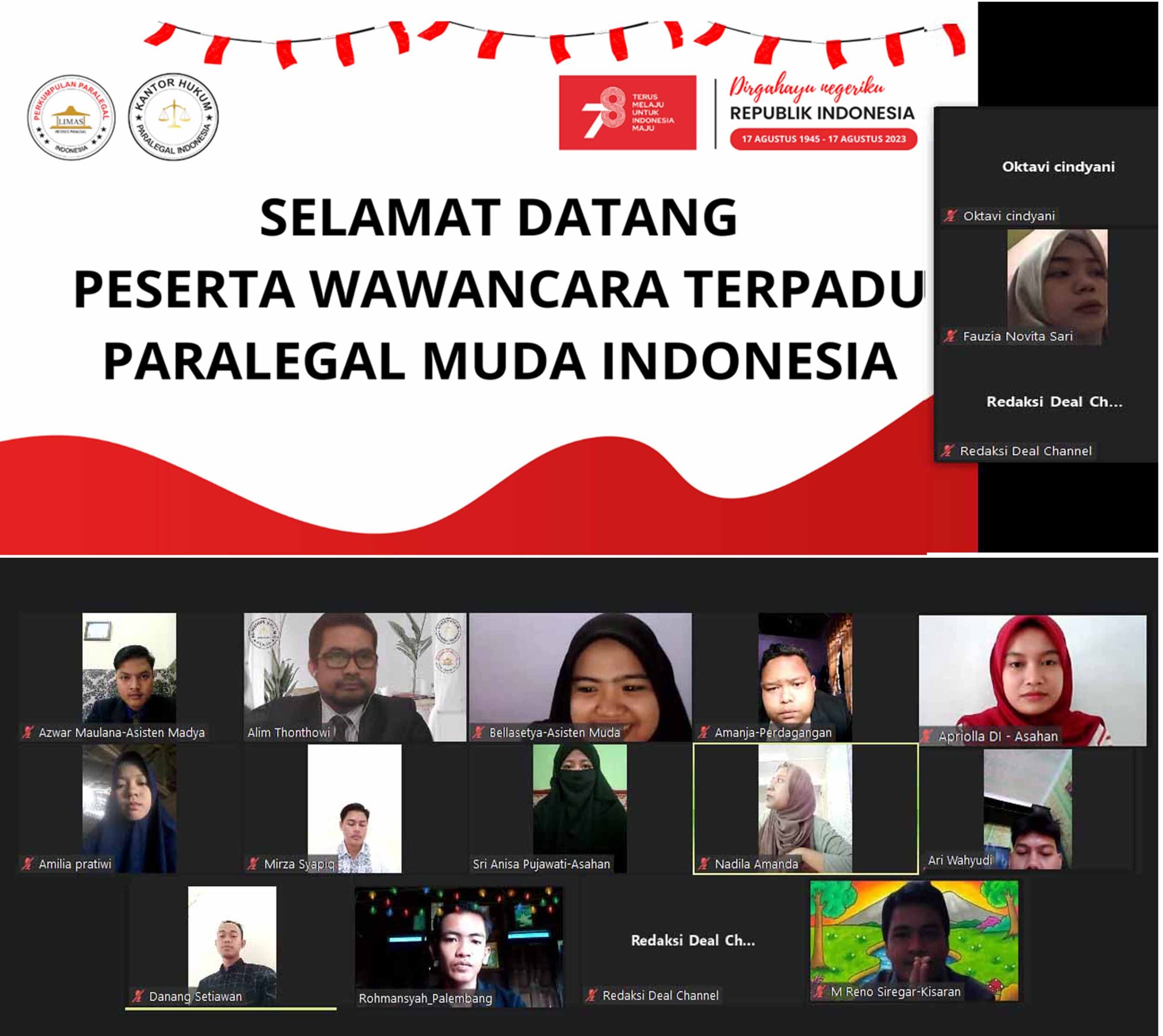 Menurut direktur harian Azwar Maulana, wawancara tersebut sebagai seleksi awal dari seluruh tahapan acara workshop paralegal online pada tanggal 18 Agustus 2023 mendatang.