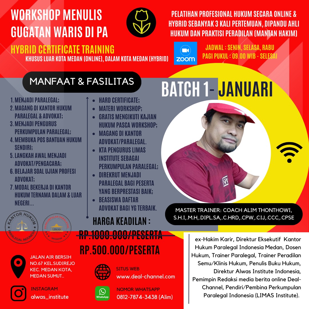 DEAL KURSUS | Dalam upaya untuk mendapatkan hak waris dengan tepat dan efektif, semakin banyak individu yang melibatkan diri dalam kursus menulis gugatan waris. Kursus ini tidak hanya memberikan pemahaman mendalam tentang proses hukum, tetapi juga membekali peserta dengan keterampilan khusus untuk menggugat hak waris secara efektif. Berikut adalah manfaat menarik dari kursus menulis gugatan waris.