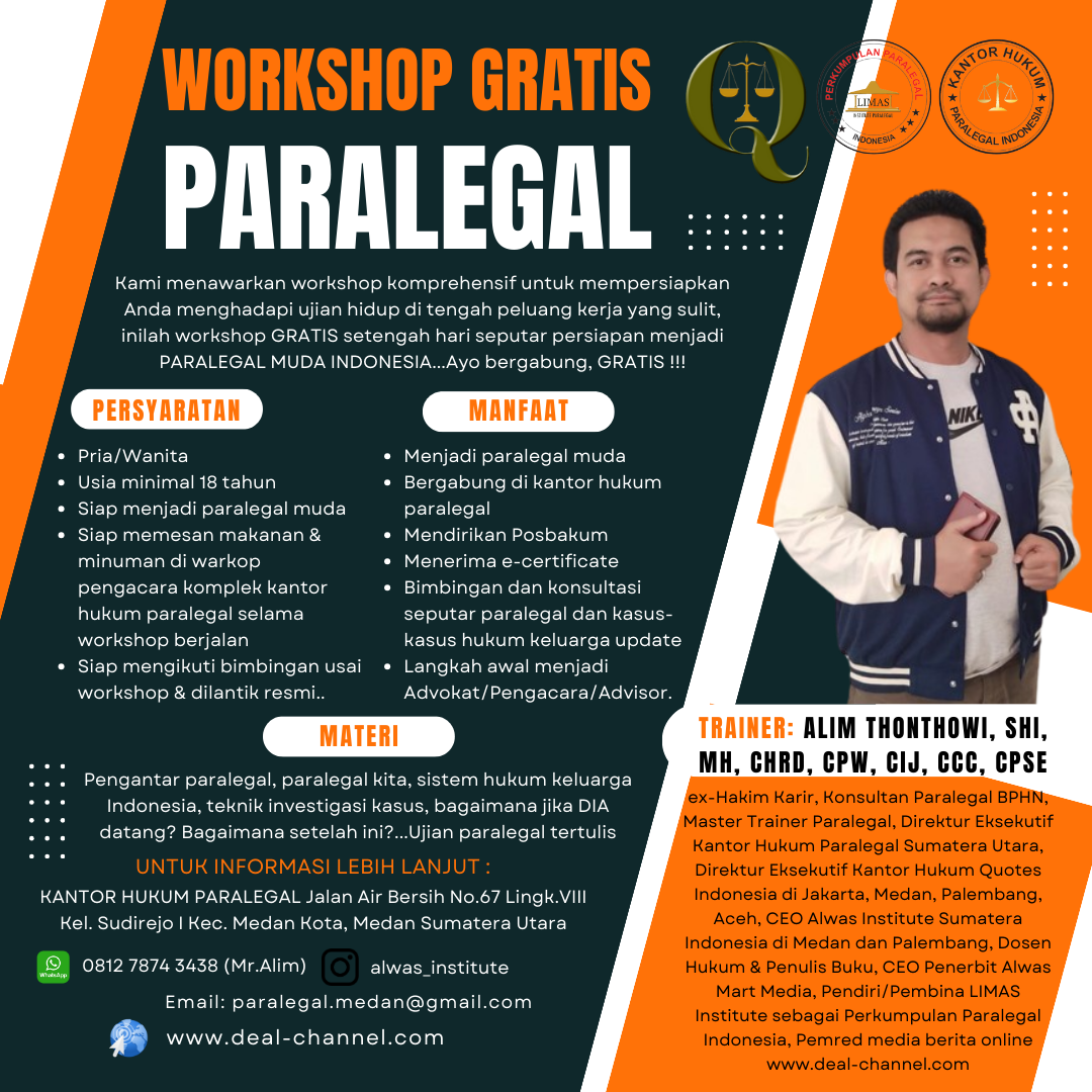 DEAL MEDAN | Kesempatan untuk mendapatkan pengetahuan paralegal tanpa biaya langsung hadir di Medan! Warkop Pengacara, sebuah warung kopi yang inovatif, membuka Workshop Paralegal Gratis yang dapat diikuti oleh siapa pun, hanya dengan memesan minuman.