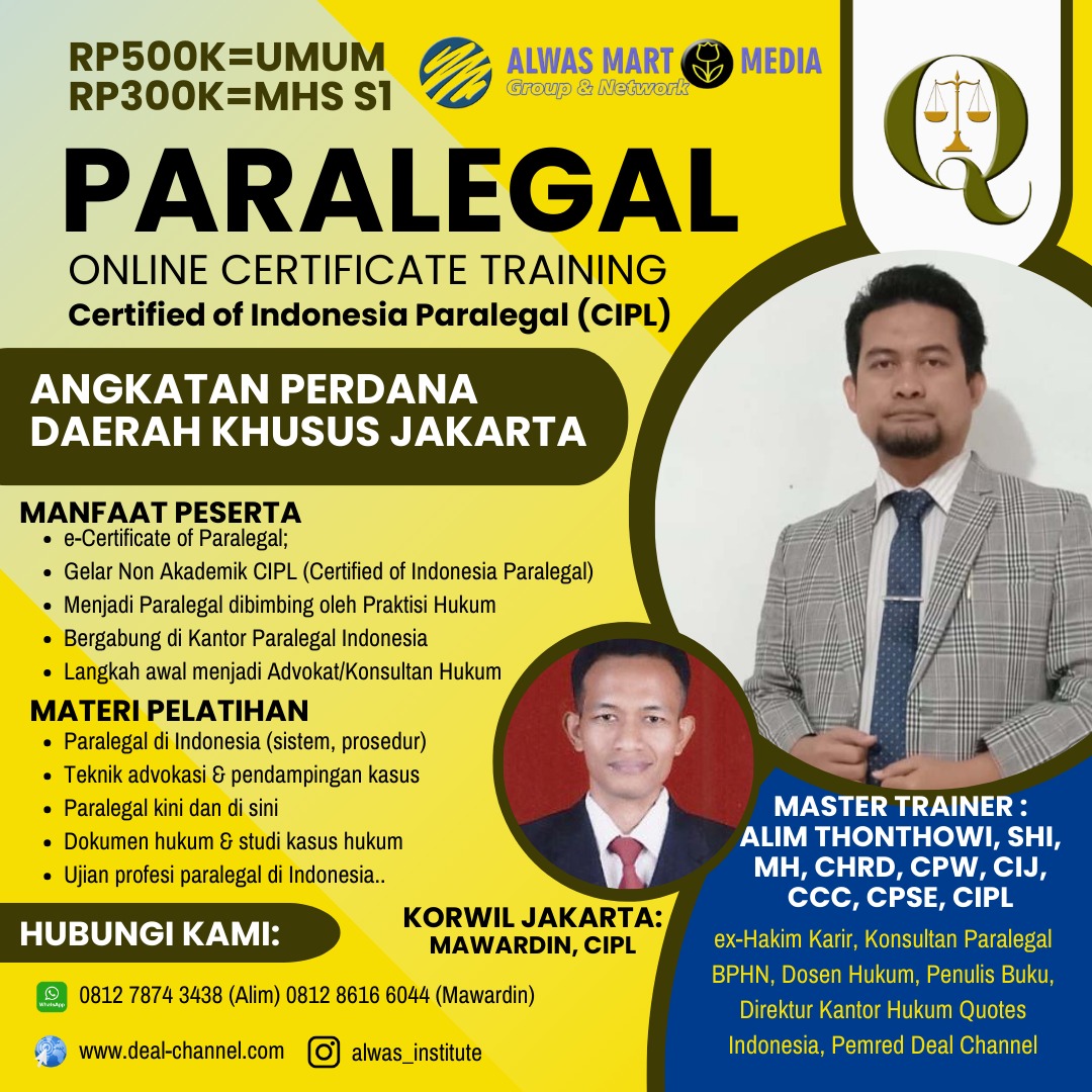 DEAL KURSUS | Semakin berkembangnya kompleksitas sistem hukum, permintaan akan tenaga kerja terampil di bidang hukum semakin meningkat. Demi memenuhi kebutuhan akan tenaga paralegal yang kompeten, berbagai lembaga pendidikan dan pelatihan di ibukota telah menghadirkan kursus paralegal yang menawarkan pelatihan praktis dan teoretis dalam berbagai aspek hukum. Mari kita telusuri lebih jauh tentang kursus paralegal di ibukota: