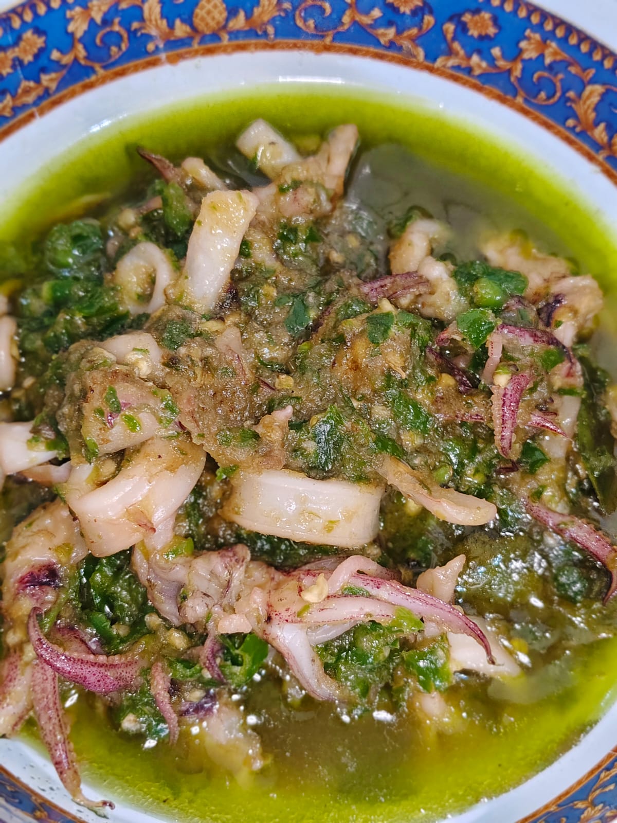 Sebagai hidangan sahur, Cumi Cabai Ijo menawarkan perpaduan yang sempurna antara gurihnya cumi-cumi segar dan pedasnya cabai hijau yang menyengat. Dengan cita rasa yang menggugah selera, hidangan ini tidak hanya memuaskan lapar, tetapi juga memberikan sensasi yang membangkitkan semangat untuk memulai puasa dengan penuh semangat.