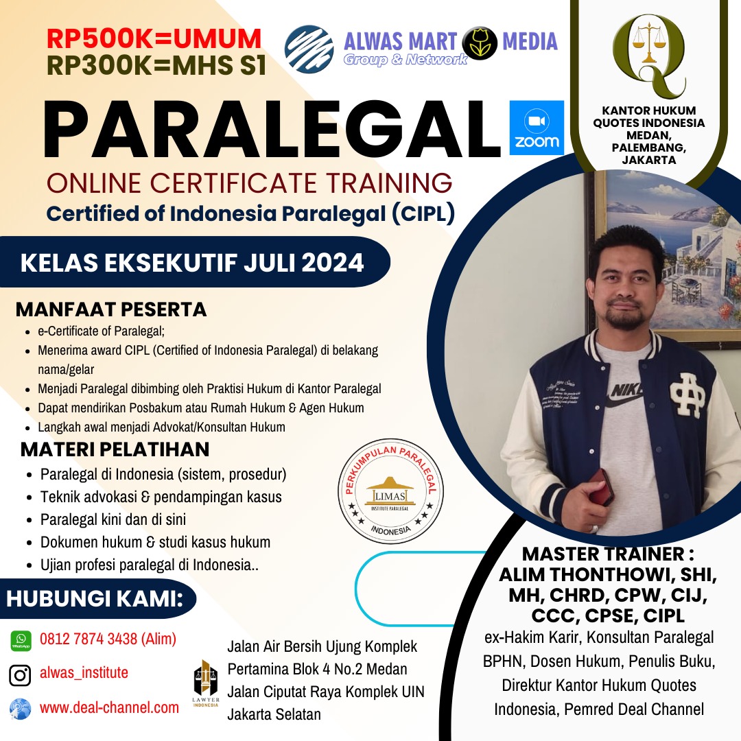 DEAL KURSUS | Profesi paralegal di Indonesia semakin diakui keberadaannya dalam mendukung sistem peradilan yang efektif dan merata bagi masyarakat. Dalam upaya meningkatkan profesionalisme dan kompetensi, telah dilakukan pelatihan intensif bagi para paralegal di berbagai daerah. Pelatihan ini bertujuan untuk membekali mereka dengan pengetahuan hukum yang mendalam serta keterampilan praktis dalam memberikan pelayanan hukum yang berkualitas.