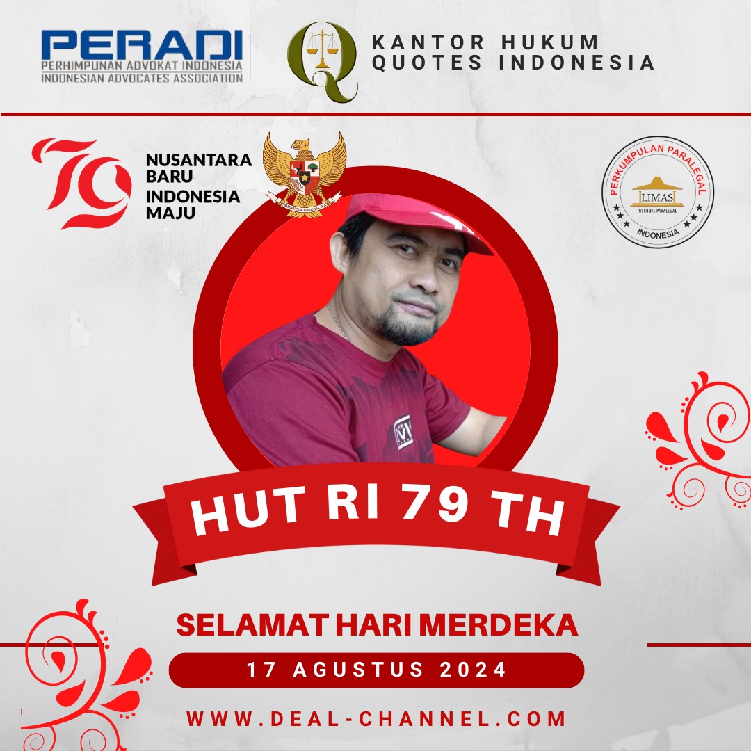 DEAL KURSUS | Dalam rangka menyambut Hari Ulang Tahun Republik Indonesia yang ke-79, Kantor Hukum Quotes Indonesia, salah satu firma hukum terkemuka di tanah air, telah mengeluarkan pernyataan resmi yang penuh makna dan semangat kebangsaan. Ucapan selamat ini disampaikan sebagai bentuk penghormatan dan dukungan terhadap nilai-nilai kemerdekaan dan keadilan yang menjadi dasar negara Indonesia.