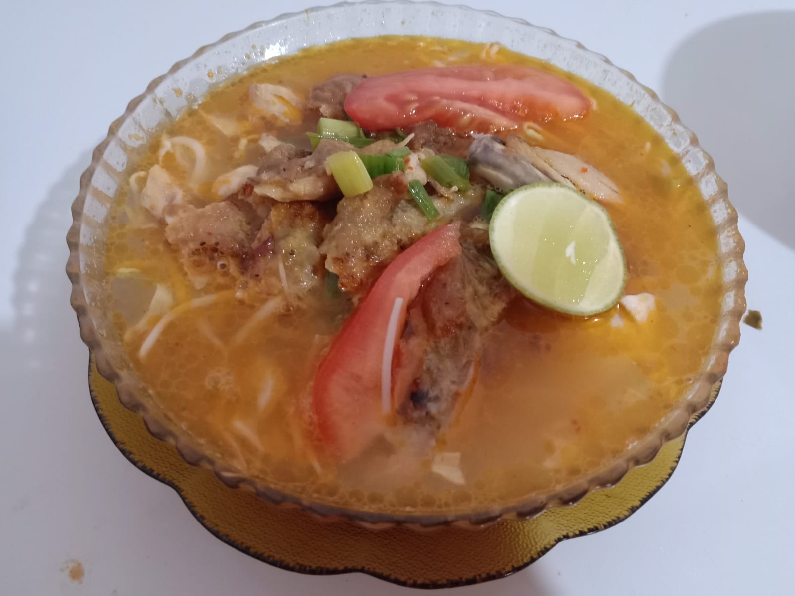 Soto mie pedas, dengan kuah bening yang kaya akan rempah, menggugah selera sejak suapan pertama. Potongan daging sapi yang empuk, mi kuning yang kenyal, serta tambahan irisan kol, tomat, dan kentang, menjadikan hidangan ini semakin kaya rasa dan tekstur. Sensasi pedas dari sambal yang melimpah menjadi daya tarik tersendiri bagi pecinta kuliner pedas.