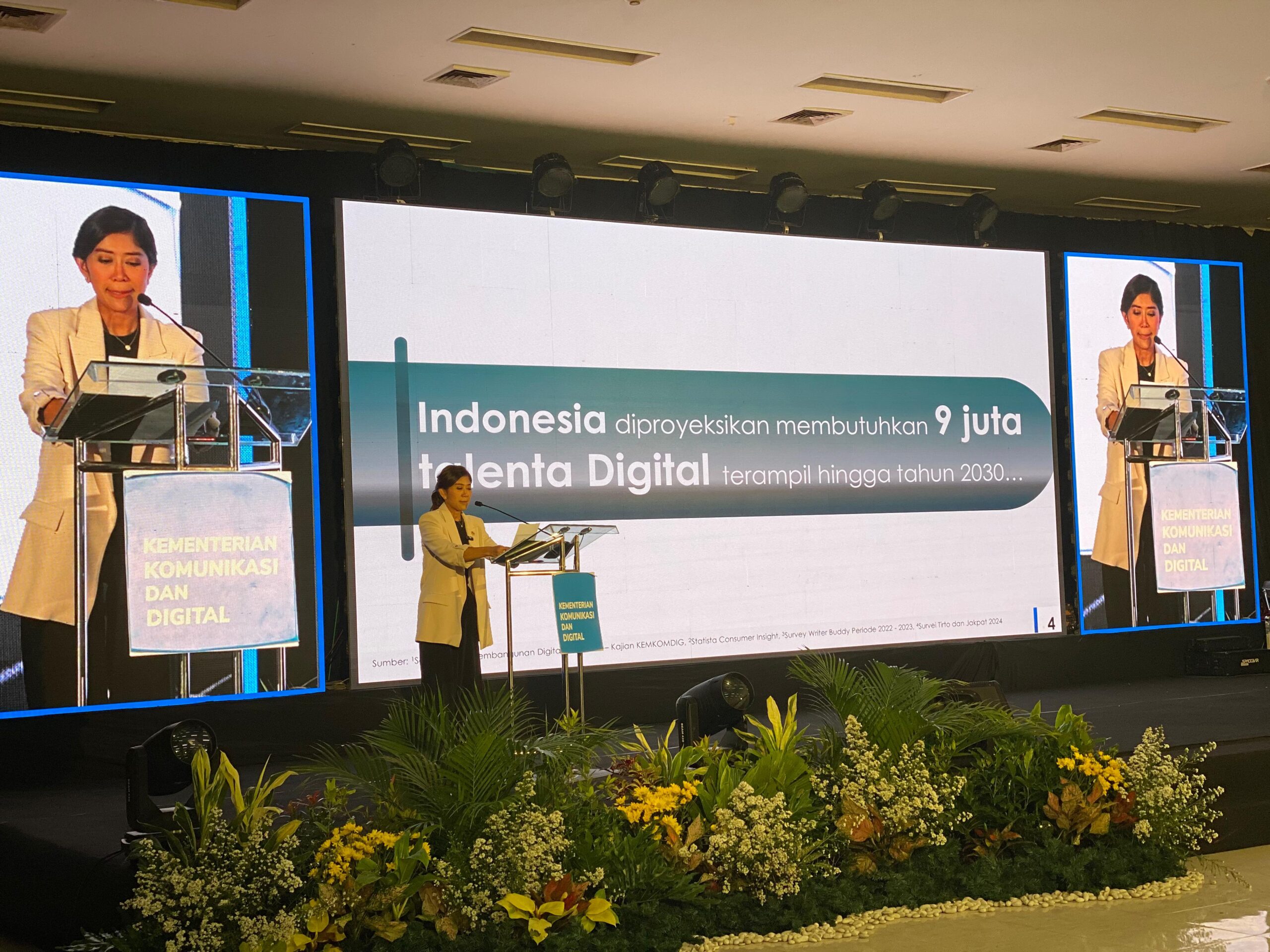 Saat ini, Indonesia membutuhkan sekitar 9 juta talenta digital hingga 2030 untuk menguasai teknologi, termasuk AI. Pemerintah pun telah melatih lebih dari 1 juta talenta digital baru pada 2024 dan menjangkau 5,6 juta peserta literasi digital.