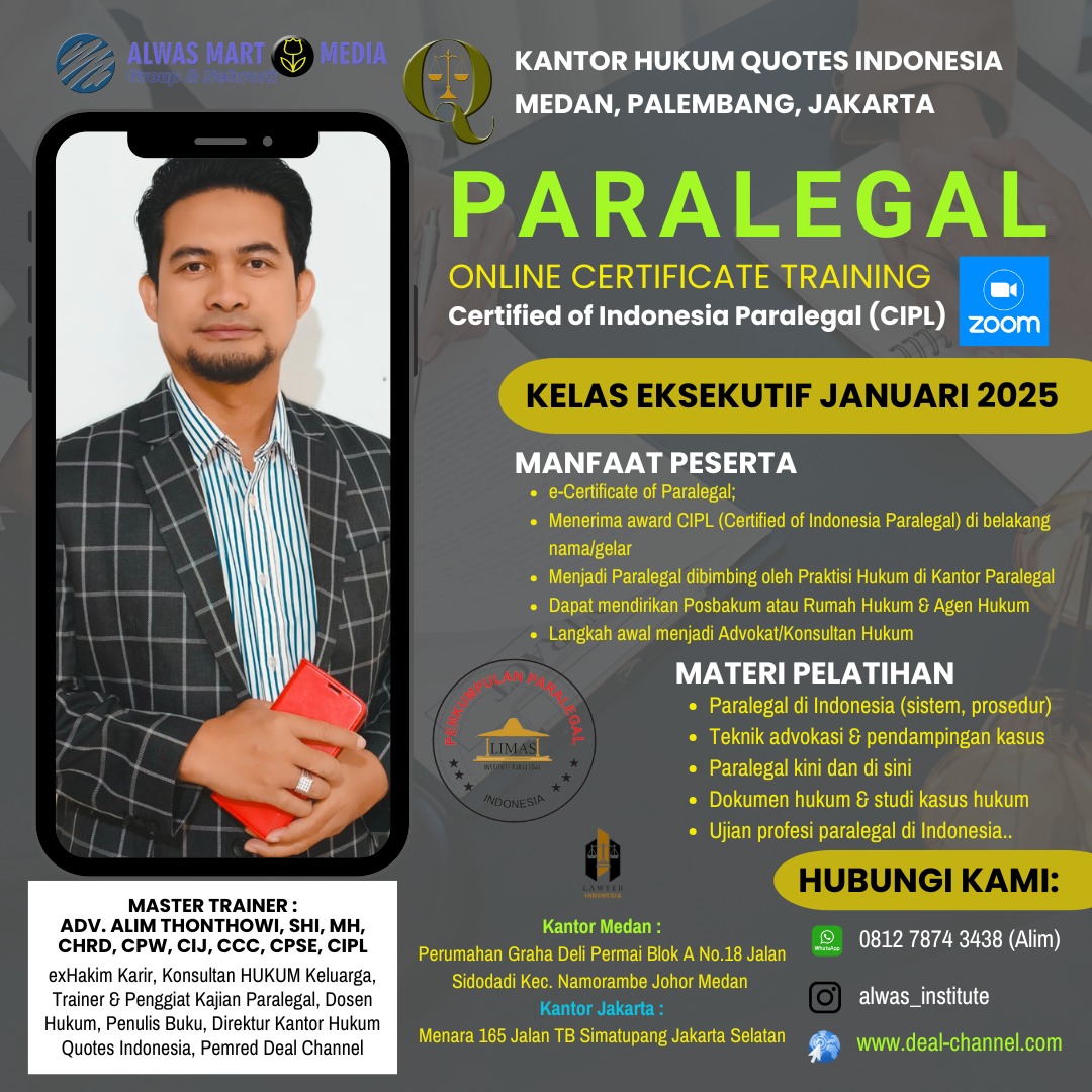 DEAL KURSUS | Kemajuan teknologi dan meningkatnya kebutuhan untuk akses pendidikan yang fleksibel, dunia pelatihan paralegal kini memasuki babak baru. Menyambut tahun 2025, berbagai lembaga pendidikan dan organisasi hukum meluncurkan program pelatihan paralegal online yang semakin populer di kalangan mereka yang ingin berkarier di bidang hukum tanpa harus mengorbankan waktu dan tempat. Program ini memberikan peluang emas bagi para profesional, mahasiswa, dan individu yang ingin mengembangkan keterampilan praktis di bidang hukum, namun terhalang oleh keterbatasan geografis atau waktu.