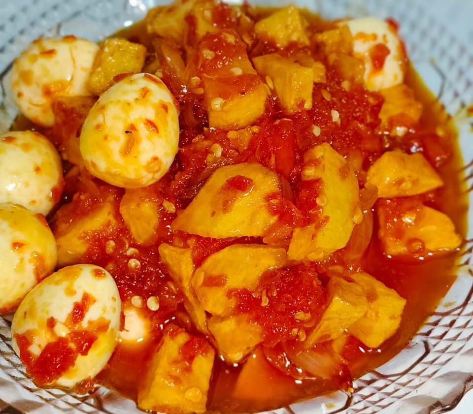 Balado kentang telur puyuh merupakan perpaduan sempurna antara kentang yang renyah di luar dan lembut di dalam, serta telur puyuh yang kaya protein. Keduanya dibalut dengan sambal balado khas yang terbuat dari cabai merah, bawang putih, bawang merah, serta tambahan sedikit gula dan garam untuk menyeimbangkan rasa.